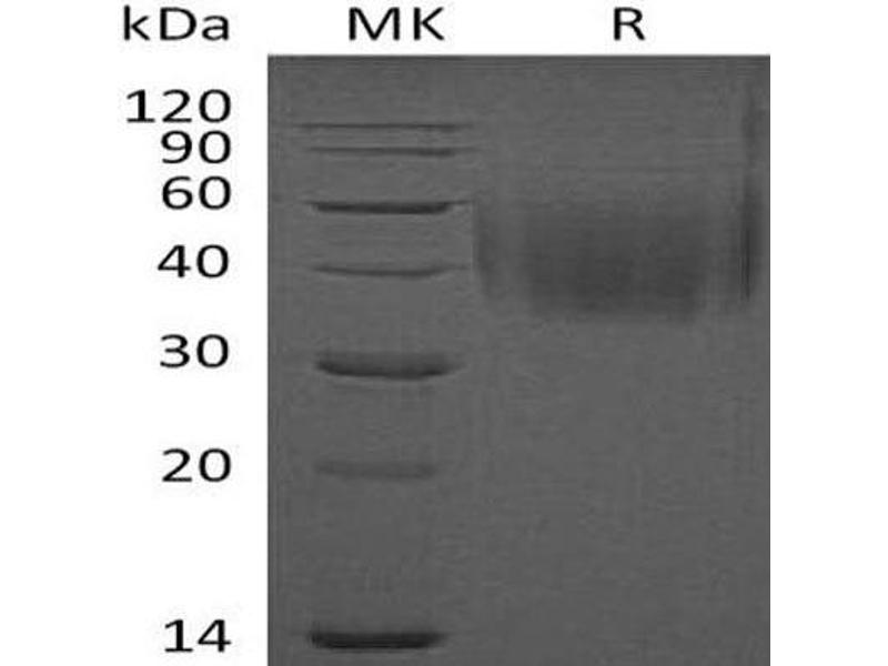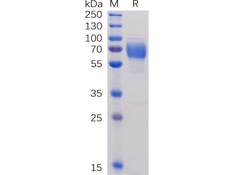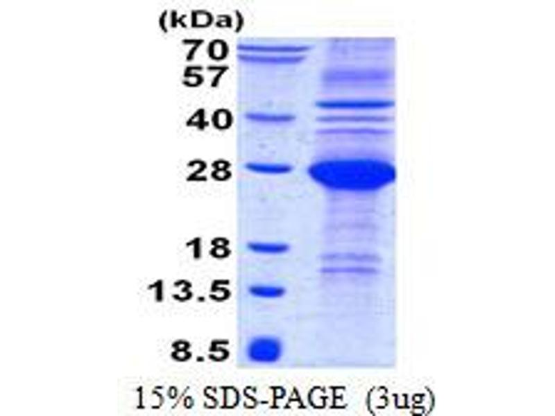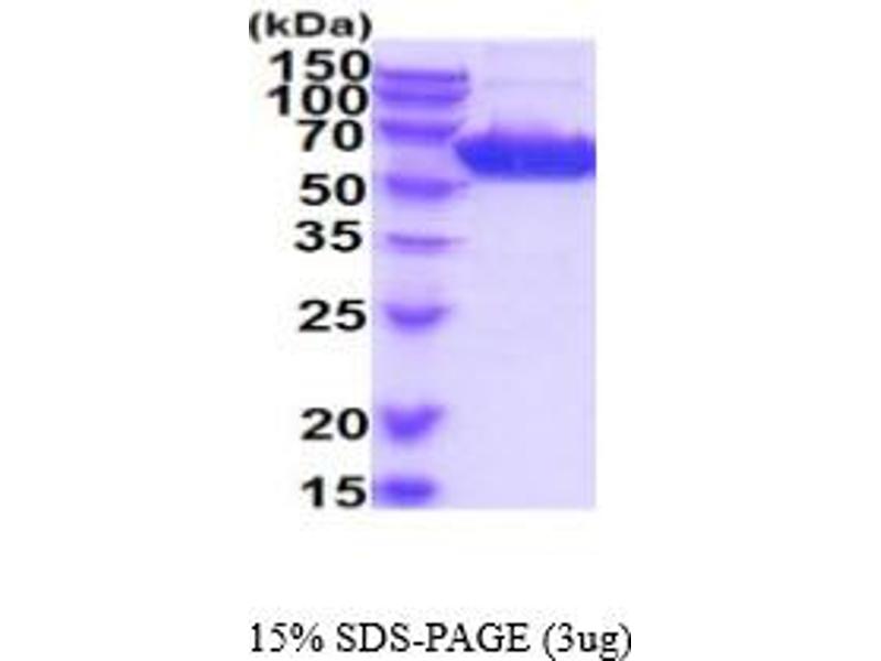 The purity of the protein is greater than 95 % as determined by SDS-PAGE and Coomassie blue staining.