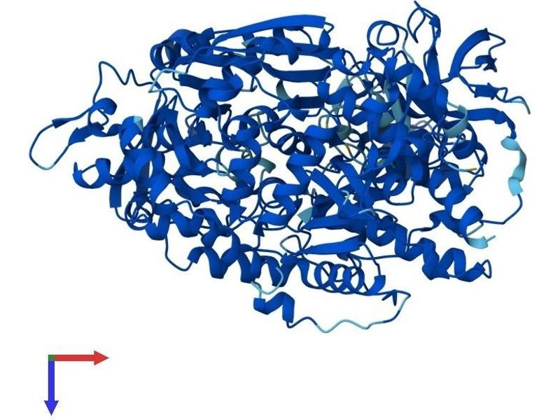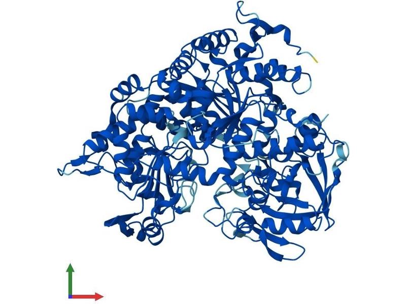 Aconitase 1, also known as iron regulatory element binding protein 1 (IREB1), is a cytosolic protein which binds to iron-responsive elements (IREs). IREs are stem-loop structures found in the 5' UTR of ferritin mRNA, and in the 3' UTR of transferrin receptor mRNA. The iron-induced binding to the IRE results in repression of translation of ferritin mRNA, and inhibition of degradation of the otherwise rapidly degrading transferrin receptor mRNA. Thus, IREB1 plays a central role in cellular iron homeostasis. It was also shown to have aconitase activity, and hence grouped with the aconitase family of enzymes. [provided by RefSeq, Jul 2008].
