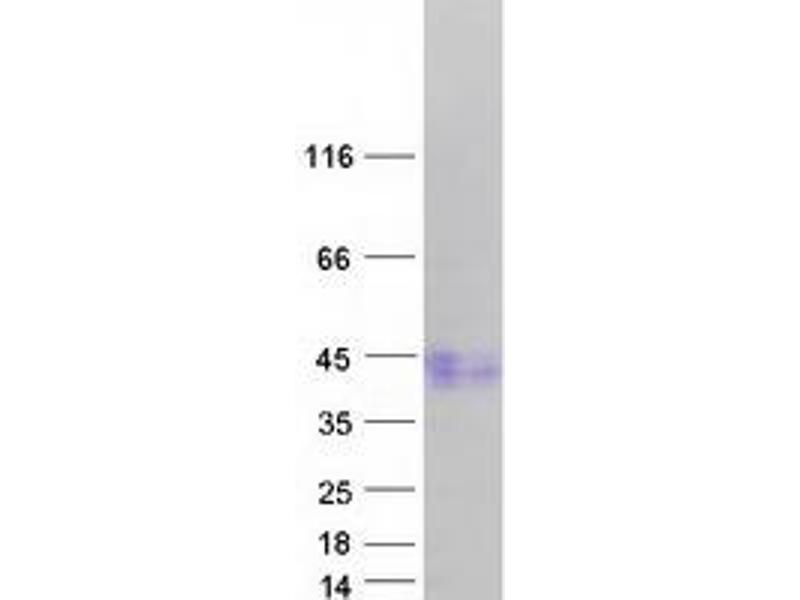 The purity of the protein is greater than 95 % as determined by SDS-PAGE and Coomassie blue staining.