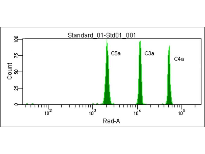 - Reagents for capture and detection of C4a, C3a, and C5a, standards, wash buffer, assay diluent, cytometer setup reagents