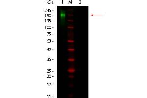 Application Note: Fluorescent Rabbit TrueBlot® Antibody DyLight™ 800 may also be used for detection in immunoassays that do not employ immunoprecipitation. Fluorescent Rabbit TrueBlot® Antibody DyLight™ 800 is provided as a lyophilized powder. To conserve reagent, we recommend incubating the blots from minigels in sealed bags (removing as much air as possible) with minimal volume (2-3 mLs). If used conservatively at 2.5 mLs/blot will yield enough reagent for 200 blots. Note that there are three key procedural considerations: 1. Protein A or G should not be used for the immunoprecipitation. Use of protein A or G beads with the rabbit TrueBlot will result in contaminating bands. For immunoprecipitation, Anti-rat IgG beads, or Anti-rabbit IgG beads should be used for rat or rabbit immunoprecipitating antibodies, respectively. 2. Immunoprecipitate should be completely reduced. 3. Bovine Serum Albumin, or MB-070 Blocking Buffer for Fluorescent Western Blotting, at low concentrations, should be used as the blocking protein for the immunoblot. DO NOT USE BLOTTO or MILK. All recommended dilutions for listed applications are intended as an initial recommendation, specific conditions for each protein and antibody combination should be specifically optimized by the end user. Fluorescence technology is widely used to detect proteins. However, many common visible fluorophores often result in considerable background fluorescence in the visible range. Visible fluorophores are rarely used for membrane-based protein detection because of this high background. DyLight™ 800 and DyLight™ 680 antibody and reagent conjugates are specifically designed for protein detection methods that use longer-wavelength, near-infrared (IR) fluorophores to visualize proteins in western blotting and other applications. Very low background fluorescence in the IR range provides for a much higher signal-to-noise ratio than visible fluorophores. Detection levels in the picogram range on Western blots rival the sensitivity of chemiluminescence on film. DyLight™ 800 conjugates are optimized for the Odyssey® Infrared Imaging System developed by LI-COR. DyLight™ 800 conjugates are also suitable for immunofluorescence microscopy using commercially available excitation/emission filters in the 780nm/820nm range. Dual simultaneous labeling in western blots or microscopy is achieved when DyLight™ 800 conjugates are used in conjunction with DyLight™ 680 conjugates. DyLight™ 800 and DyLight™ 680 conjugates provide an ultra-sensitive and convenient alternative to standard chemiluminescent protein detection methods, as well as a valuable tool for multicolor imaging.