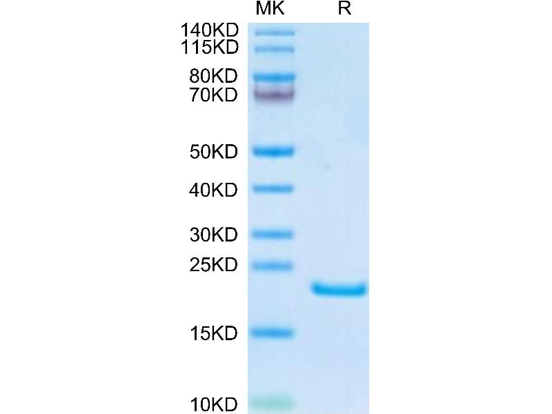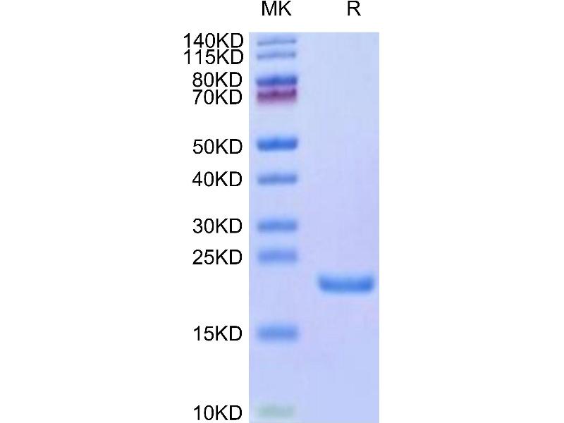 The purity of the protein is greater than 95 % as determined by SDS-PAGE and Coomassie blue staining.