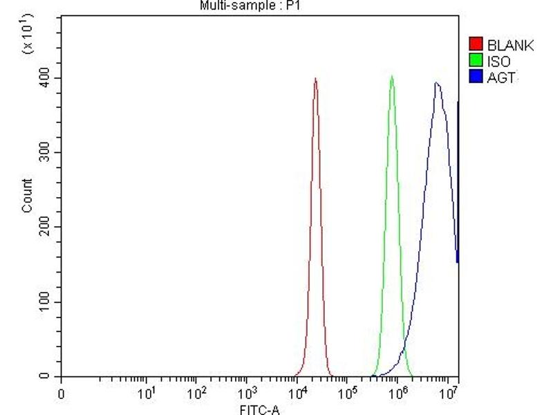 AGT Reactivity: Human, Rat, Mouse WB, FACS, IF (cc), IF (p) Host: Rabbit Polyclonal FITC