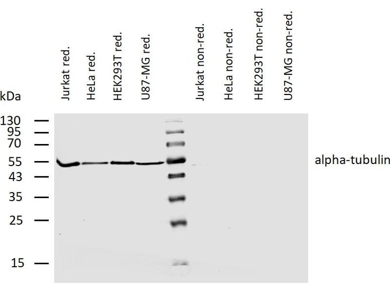 TUBA1 Reactivity: Human, Mouse, Pig, Saccharomyces cerevisiae, Arabidopsis, Nicotiana tabacum, Eisenia fetida, Paramecium, Turkey WB, IHC (p), IP, ICC, ICFC Host: Mouse Monoclonal TU-01 unconjugated