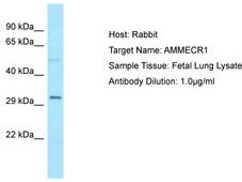 Alport syndrome, mental retardation, midface hypoplasia and elliptocytosis chromosomal region gene 1 L homeolog (ammecr1.L) AntibodiesAlport syndrome, mental retardation, midface hypoplasia and elliptocytosis chromosomal region gene 1 (AMMECR1) Antibodies