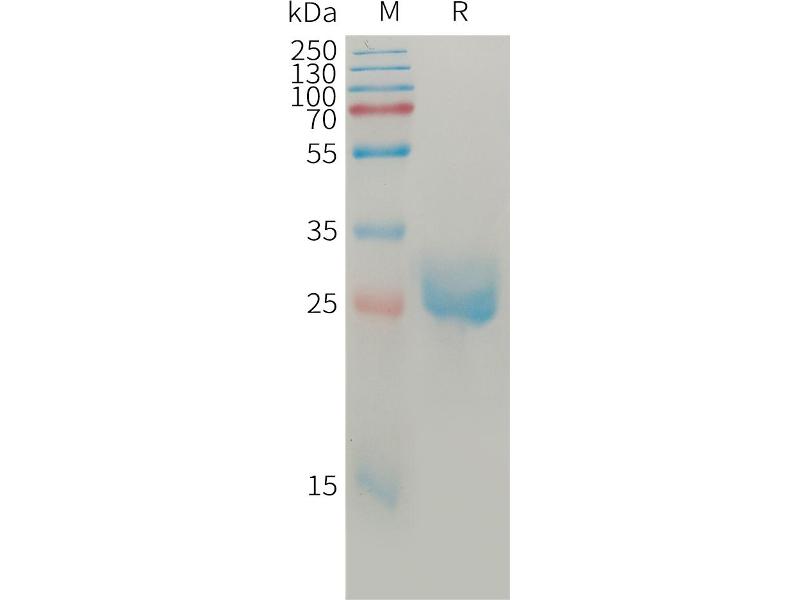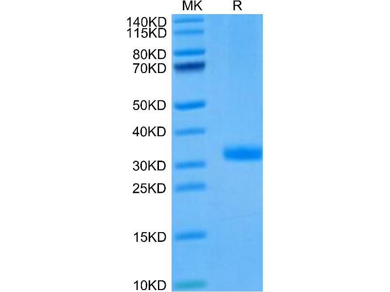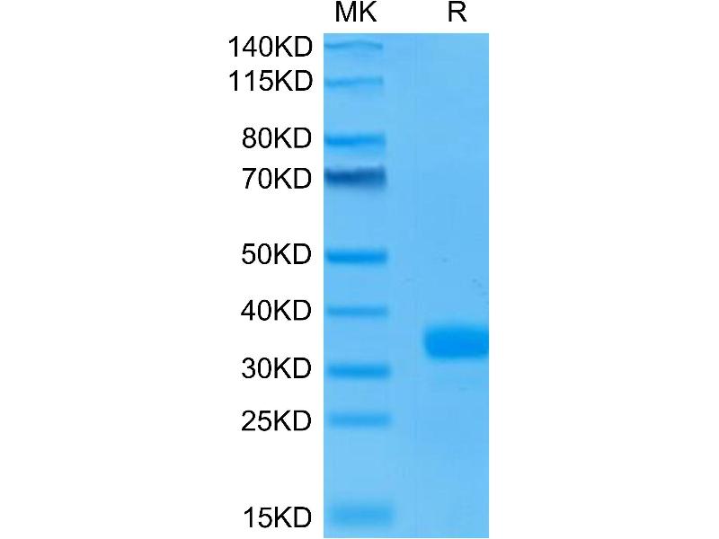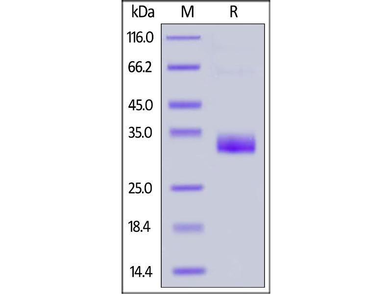 The purity of the protein is greater than 85 % as determined by SDS-PAGE and Coomassie blue staining.