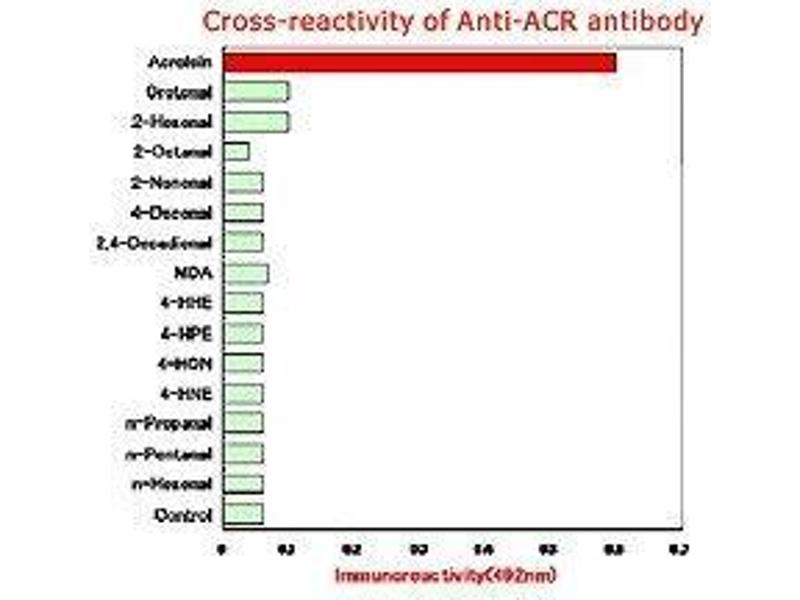 - Acrolein (ACR) is a representative carcinogenic aldehyde found ubiquitously in the environment and formed endogenously through oxidation reactions, such as lipid peroxidation and myeloperoxidasecatalyzed amino acid oxidation. ACR is highly reactive aldehyde and reacts with lysine residue in protein. The reaction with ACR and lysine residue leads to the formation of numerous numbers of adducts, such as formyl-dehydropiperidino-lysine (FDP-lysine) type derivative. This antibody is specific for the ACR-modified protein, especially FDP-lysine type derivative.