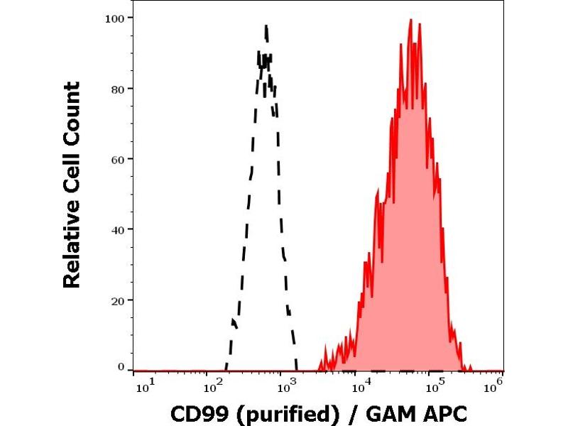 The mouse monoclonal antibody 3B2/TA8 recognizes an extracellular epitope of CD99, an approximately 32 kDa sialoglycoprotein expressed on the surface of many cell types, with particularly strong expression on Ewing´s sarcoma and peripheral primitive neuroectodermal tumors. Within the hematopoietic system, CD99 is expressed on virtually all cell types except granulocytes.