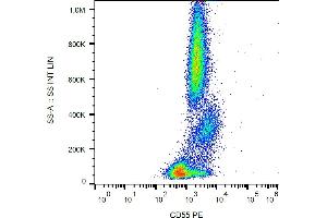 The antibody MEM-118 recognizes an epitope in SCR4 domain of CD55 (Decay accelerating factor, DAF), a 60-70 kDa glycosylphosphatidylinositol (GPI)-anchored single chain extracellular glycoprotein. CD55 is widely expressed on hematopoietic and on many non-hematopoietic cells, it is weakly present on NK cells.