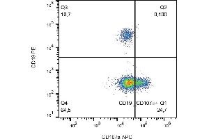 The mouse monoclonal antibody H4A3 recognizes an extracellular/luminal epitope of CD107a, an approximately 100-120 kDa glycoprotein expressed mainly on lysosomal, but also on the plasma membrane.