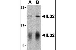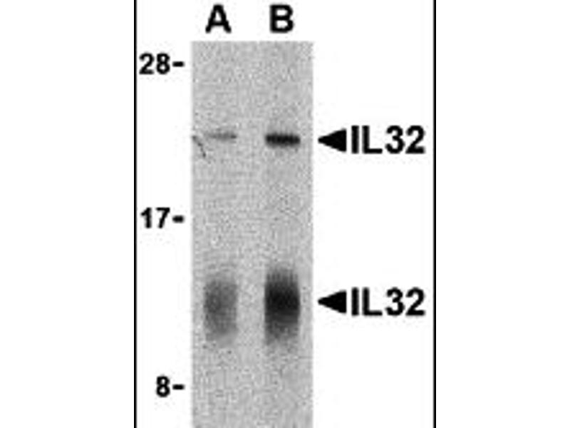 IL-32 antibody can be used for the detection of IL-32 by Western blot at 5 - 10 μg/mL.