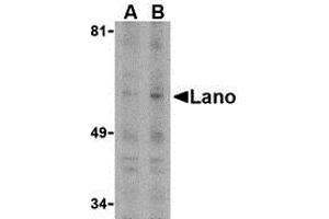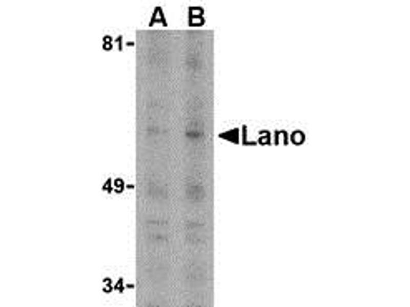 - Lano antibody can be used for detection of Lano by Western blot at 1 - 2 μg/mL.