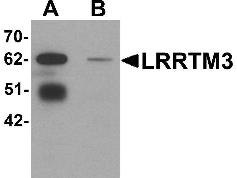 LRRTM3 antibody can be used for detection of LRRTM3 by Western blot at 1 - 2 μg/mL.