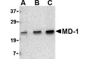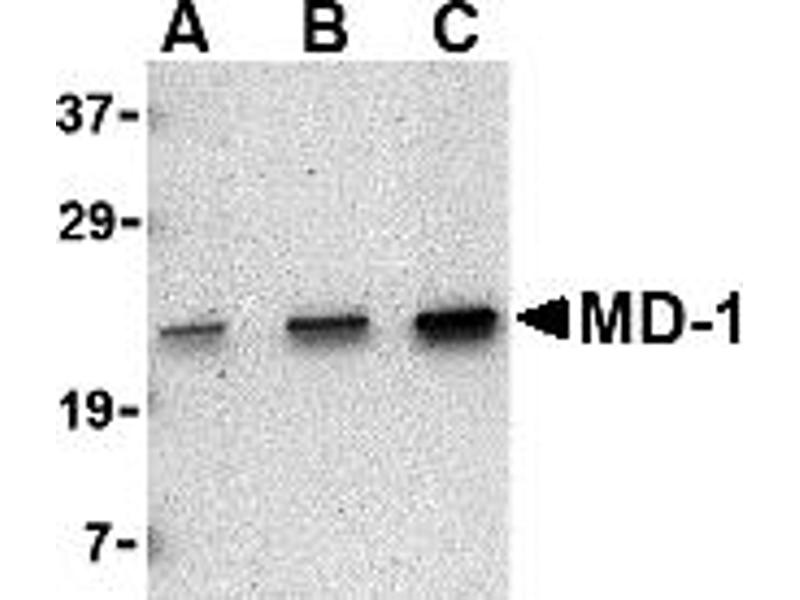 MD-1 antibody can be used for the detection of MD-1 by Western blot at 0.5 - 1 μg/mL.