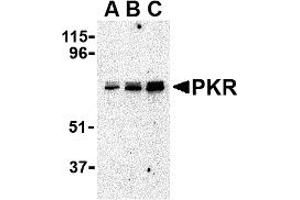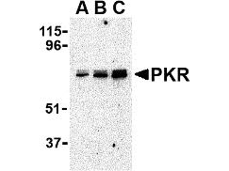 PKR antibody can be used for detection of PKR by Western blot at 0.5 - 1 μg/mL.