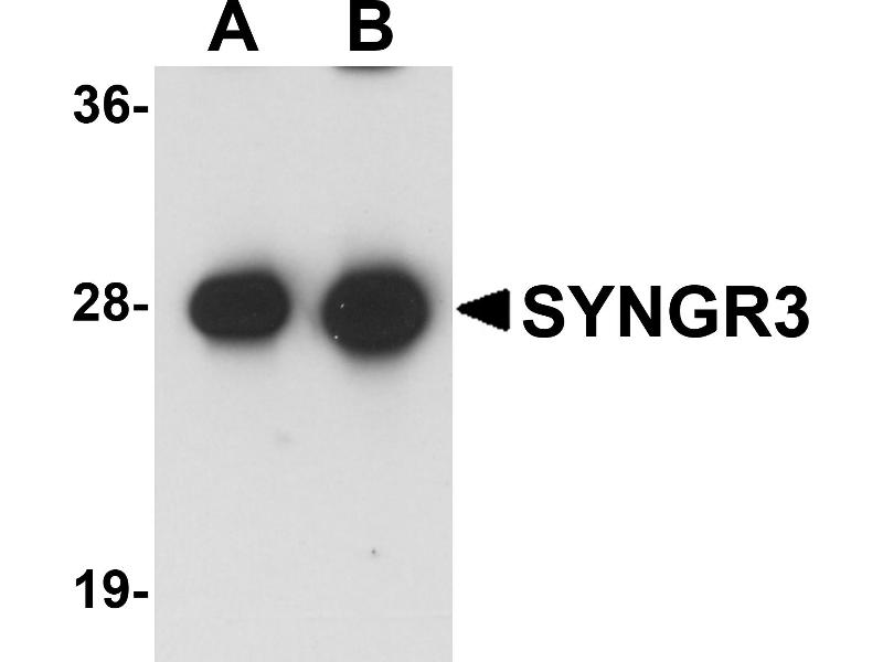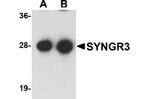 - SYNGR3 antibody can be used for detection of SYNGR3 by Western blot at 1 - 2 μg/mL.