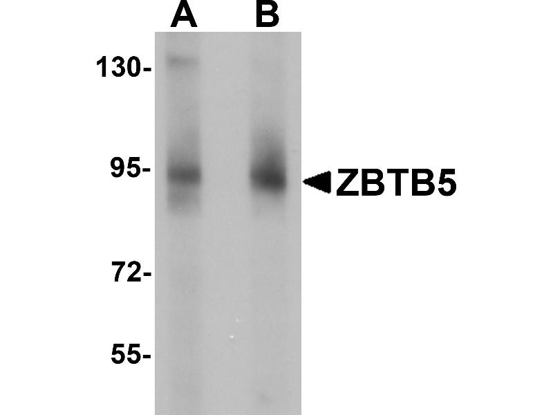At least two isoforms of ZBTB5 are known to exist, this antibody will recognize both isoforms. This antibody is predicted to not cross-react with other ZBTB protein family members.