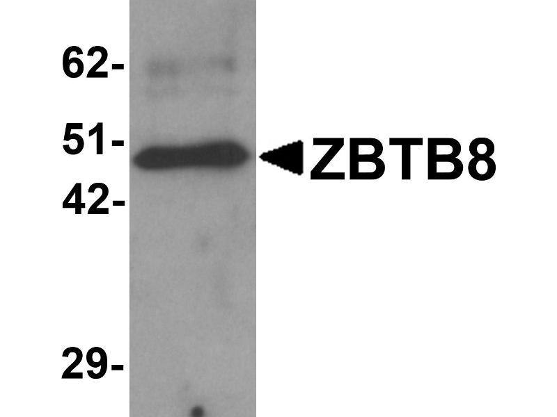 ZBTB8 antibody can be used for detection of ZBTB8 by Western blot at 1 - 2 μg/mL.