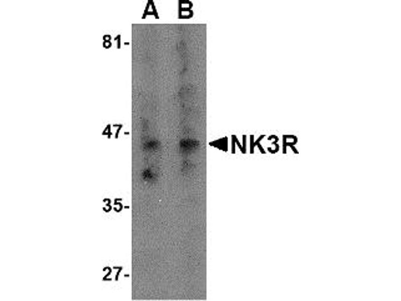 - NK3R antibody can be used for detection of NK3R by Western blot at 0.5 - 1 μg/mL.