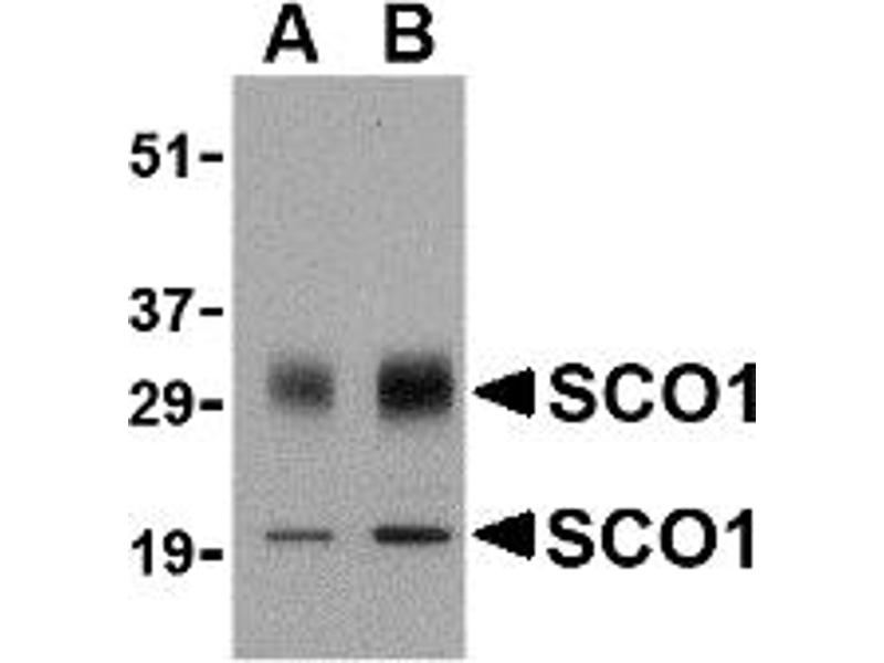 SCO1 antibody can be used for detection of SCO1 by Western blot at 0.5 - 1 μg/mL.