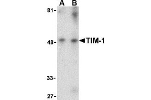 TIM-1 antibody can be used for the detection of TIM-1 by Western blot at 1 - 2 μg/mL.