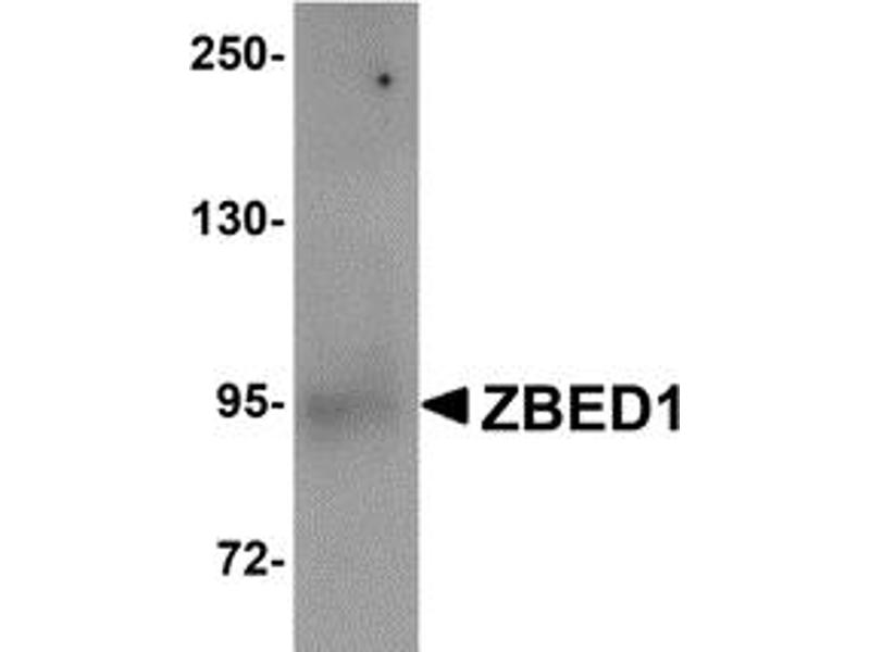 ZBED1 antibody can be used for detection of ZBED1 by Western blot at 1 - 2 μg/mL.