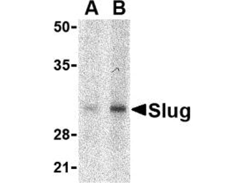 - Slug antibody can be used for detection of Slug by Western blot at 1 to 2 μg/mL.