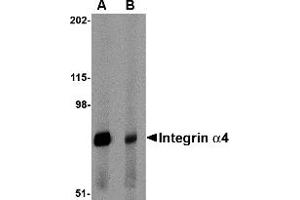Integrin alpha 4 antibody can be used for the detection of Integrin alpha 4 by Western blot at 0.5 - 1 μg/mL. Despite its predicted molecular weight, Integrin alpha4 will often run at higher molecular weight in SDS-PAGE.