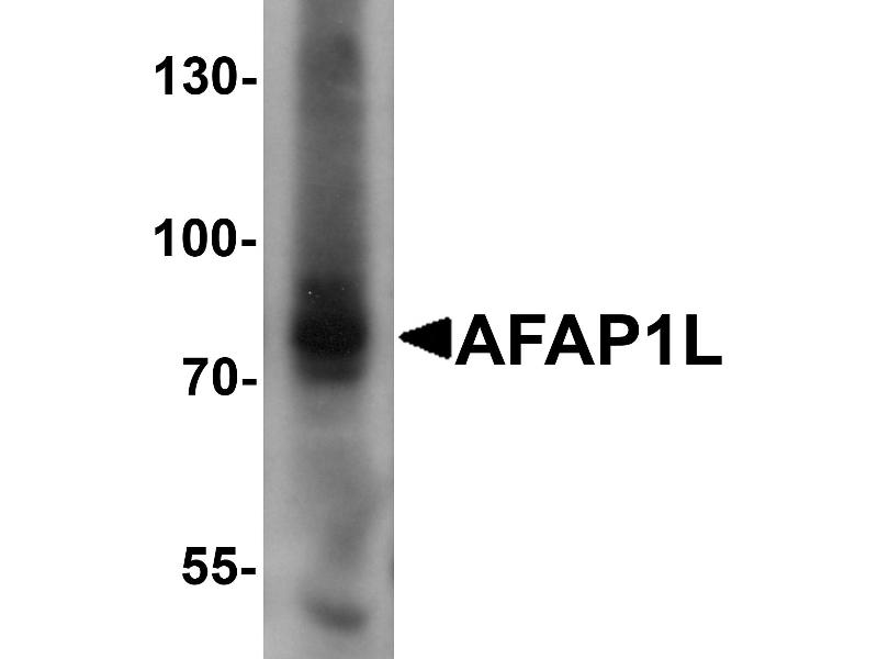AFAP1L1 antibody can be used for detection of AFAP1L1 by Western blot at 1 μg/mL. Antibody can also be used for immunocytochemistry starting at 5 μg/mL. For immunofluorescence start at 20 μg/mL. Optimal dilutions for each application to be determined by the researcher.