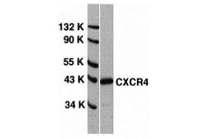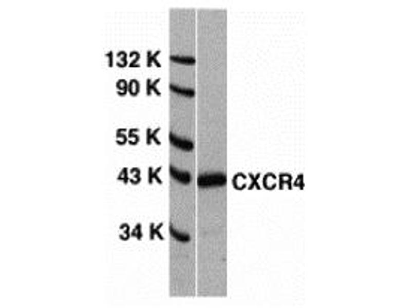 CXCR4 antibody can be used for Western blot at 1 - 2 μg/mL dilution and for immunoprecipitation and immunocytochemistry at 10 μg/mL. Flow Cytometry 1/50 - 1/100 and immunofluorescence at 1/100.