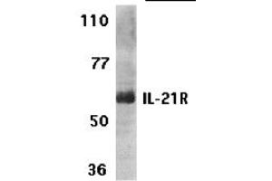 IL-21 receptor antibody can be used for detection of IL-21 receptor by Western blot at 0.5 to 1 μg/mL. An approximately 60 kDa band can be detected.
