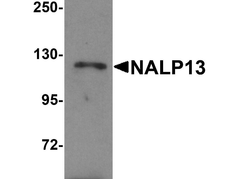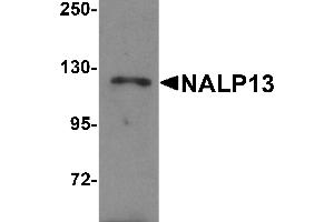 NALP13 antibody can be used for detection of NALP13 by Western blot at 1 - 2 μg/mL.