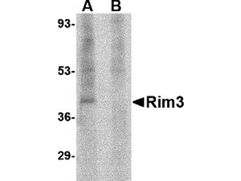 - Rim3 antibody can be used for detection of Rim3 by Western blot at 0.5 - 1 μg/mL.