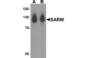 At least three alternatively spliced transcript variants encoding distinct isoforms have been observed. SARM antibody recognize the longest isoform.