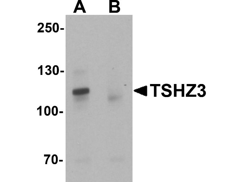 TSHZ3 antibody can be used for detection of TSHZ3 by Western blot at 1 - 2 μg/mL.