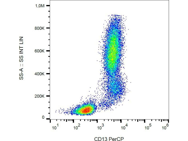 Alanyl aminopeptidase, membrane,CD13 (aminopeptidase N, APN) is a 150 kDa type II transmembrane zinc-binding ectopeptidase expressed on various cell types. This metalloprotease preferentially catalyzes removal of neutral amino acids from small peptides, thus activating or inactivating bioactive peptides. CD13 has also role in extracellular matrix degradation, antigen processing and signal transduction, is important in inflammatory responses, regulates intercellular contact, cell motility and vascularization. CD13 is involved in protection of leukemic cells against apoptosis and its expression associated with poor prognosis of carcinomas.,Aminopeptidase N, APN, PEPN, ANPEP, gp150, LAP1