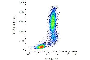 Flow cytometry: The reagent is designed for analysis of human blood cells using 10 μL reagent / 100 μL of whole blood or 106 cells in a suspension. The content of a vial (1 ml) is sufficient for 100 tests.
