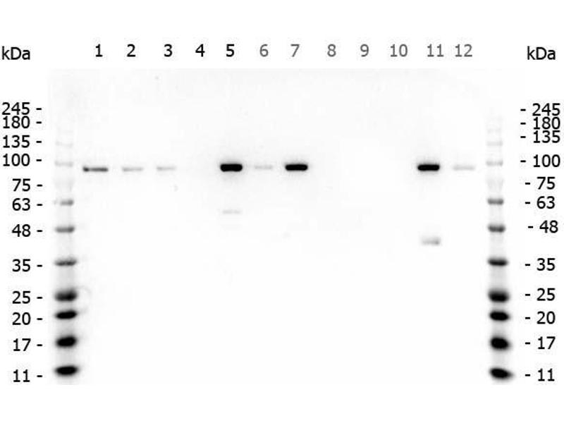 - A strong specific band was observed in the positive control at the expected size (~85.5 kDa) that is not observed in the negative control.