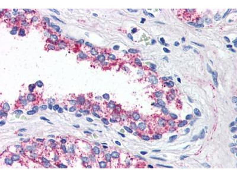 Usage: Immunohistochemistry: This antibody was validated for use in immunohistochemistry on a panel of 21 formalin-fixed, paraffin-embedded (FFPE) human tissues after proteinase K antigen retrieval. After incubation with the primary antibody, slides were incubated with biotinylated secondary antibody, followed by alkaline phosphatase-streptavidin and chromogen. The stained slides were evaluated by a pathologist to confirm staining specificity. The optimal working concentration for this antibody was determined to be 10 μg/mL. -