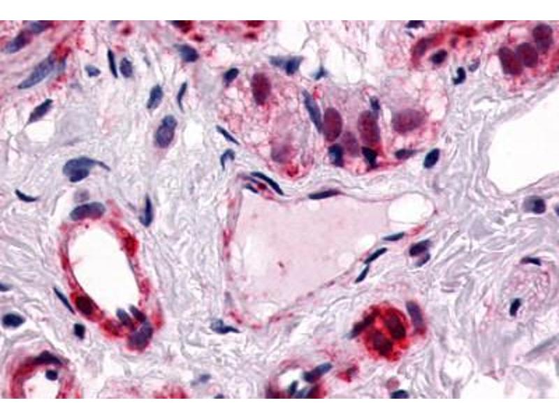- Human CALCRL. BLAST analysis of the peptide immunogen showed no homology with other human proteins, except CALCR (56 % ).
