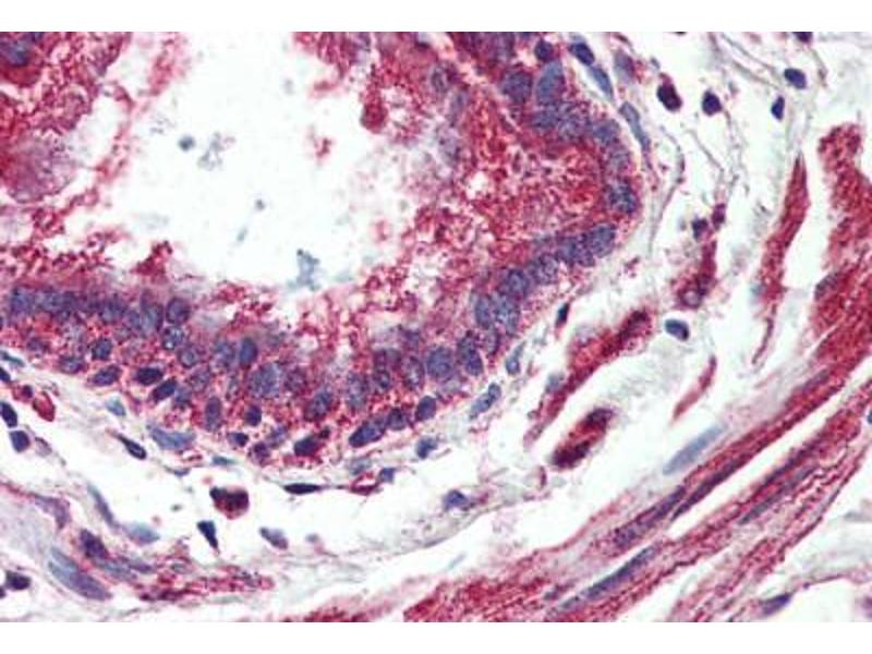 Usage: Immunohistochemistry: This antibody was validated for use in immunohistochemistry on a panel of 21 formalin-fixed, paraffin-embedded (FFPE) human tissues after proteinase K antigen retrieval. After incubation with the primary antibody, slides were incubated with biotinylated secondary antibody, followed by alkaline phosphatase-streptavidin and chromogen. The stained slides were evaluated by a pathologist to confirm staining specificity. The optimal working concentration for this antibody was determined to be 5 μg/mL. -