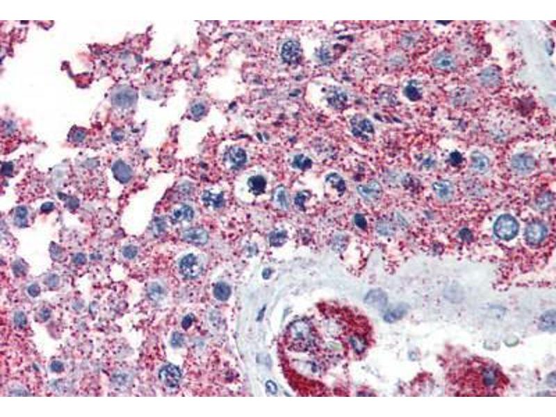 Usage: Immunohistochemistry: This antibody was validated for use in immunohistochemistry on a panel of 21 formalin-fixed, paraffin-embedded (FFPE) human tissues after proteinase K antigen retrieval. After incubation with the primary antibody, slides were incubated with biotinylated secondary antibody, followed by alkaline phosphatase-streptavidin and chromogen. The stained slides were evaluated by a pathologist to confirm staining specificity. The optimal working concentration for this antibody was determined to be 7 μg/mL. -