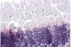 - Human NR2E3. BLAST analysis of the peptide immunogen showed no homology with other human proteins.