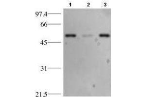 Immunogen: This protein A purified monoclonal antibody was produced by repeated immunizations with recombinant human p53 protein.