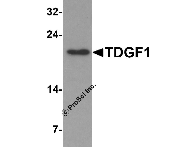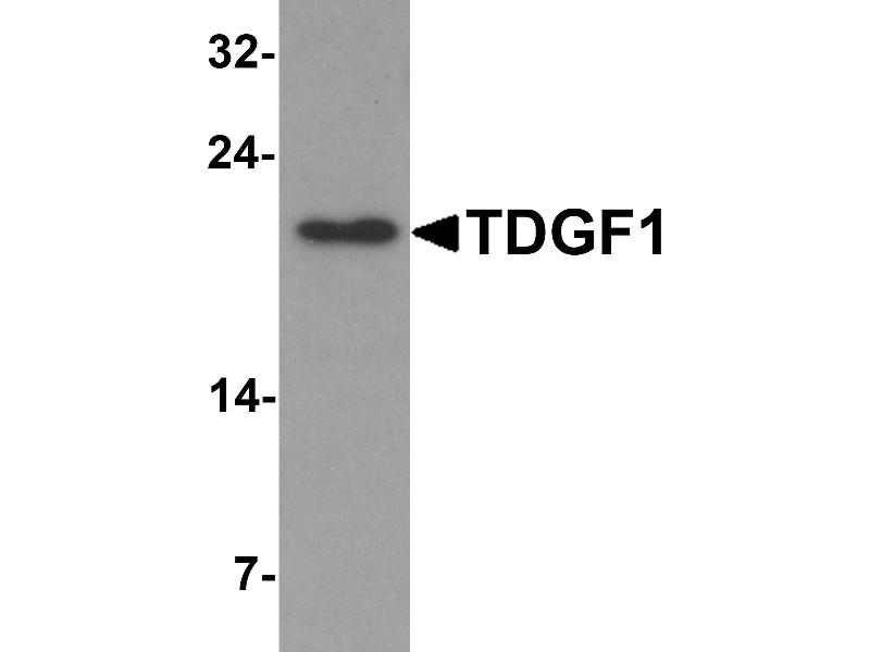 - Rabbit polyclonal TDGF1 antibody was raised against a 17 amino acid peptide near the amino terminus of human TDGF1.