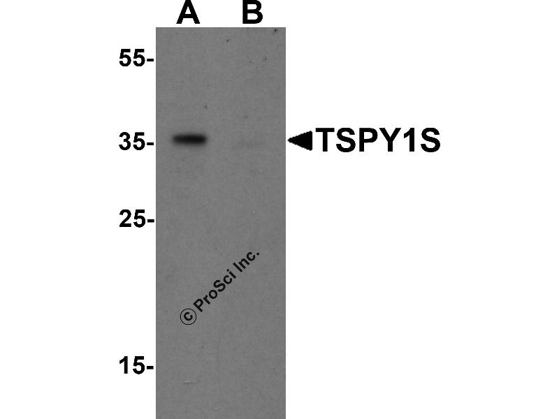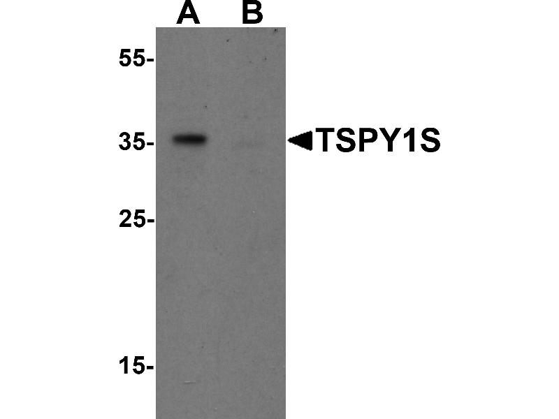 Rabbit polyclonal TSPY1S antibody was raised against a 13 amino acid peptide near the carboxy terminus of human TSPY1S.