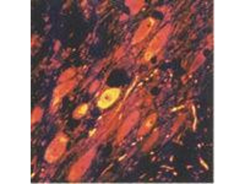 Reactivity with paraffin sections. Fluorescence microscopy and other immunohistochemical methods, works also on frozen sections if perfusion fixed. Glutaraldehyde must be included in the fixative with paraffin sections.