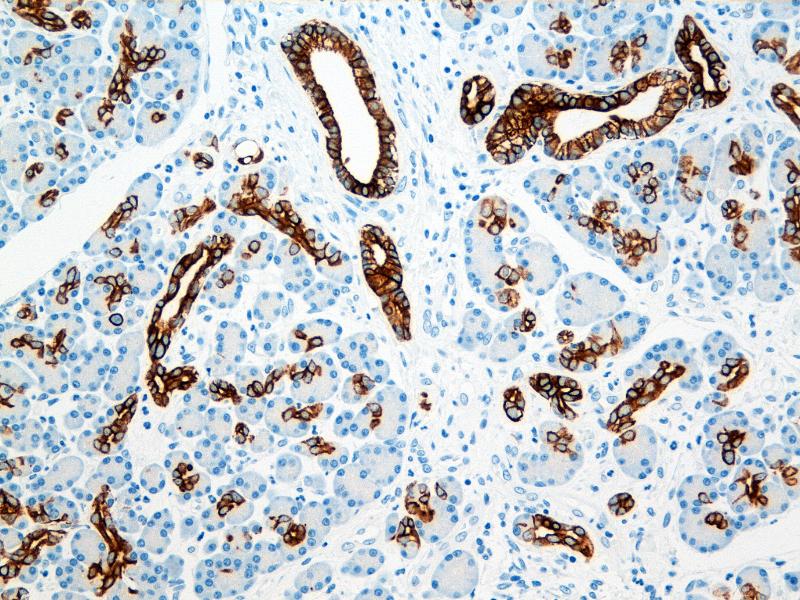 The antibody recognizes cytokeratin nos. 8, 18 and 19 typical for simple epithelial cells
