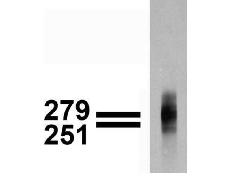 Immunoblotting: use at 1-2 μg/mL. A band of >200 kDa is detected.