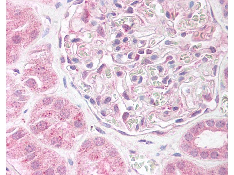 Usage: Immunohistochemistry: This antibody was validated for use in immunohistochemistry on a panel of 21 formalin-fixed, paraffin-embedded (FFPE) human tissues after heat induced antigen retrieval in pH 6.0 citrate buffer. After incubation with the primary antibody, slides were incubated with biotinylated secondary antibody, followed by alkaline phosphatase-streptavidin and chromogen. The stained slides were evaluated by a pathologist to confirm staining specificity. The optimal working concentration for this antibody was determined to be 10 μg/mL. -